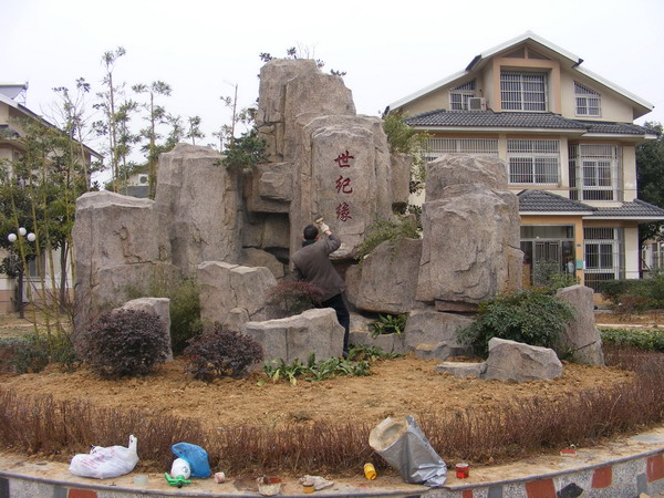 南京世纪缘花园大门口制作假山工程