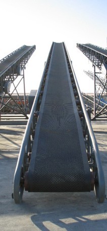 带式输送机是一种摩擦驱动以连续方式运输物料的机械。应用它可以将物料在一定的输送线上,从最初的供料点到最终的卸料点间形成一种物料的输送流程。它既可以进行碎散物料的输送,也可以进行成件物品的输送。除进行纯粹的物料输送外,还可以与各工业企业生产流程中的工艺过程的要求相配合,形成有节奏的流水作业运输线。所以带式输送机广泛应用于现代化的各种工业企业中。在矿山的井下巷道、矿井地面运输系统、露天采矿场及选矿厂中,广泛应用带式输送机。它用于水平运输或倾斜运输。
