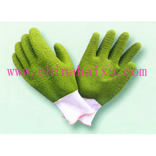 描述 13针白尼龙全浸橄榄绿色天然乳胶,细纹起皱处理