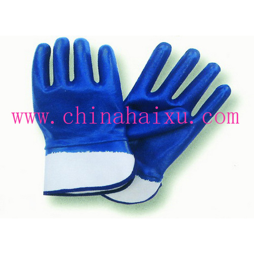 DESCRIPTION: Blue Nitrile fully coated, white cotton jersey liner, safety cuff, smooth finish